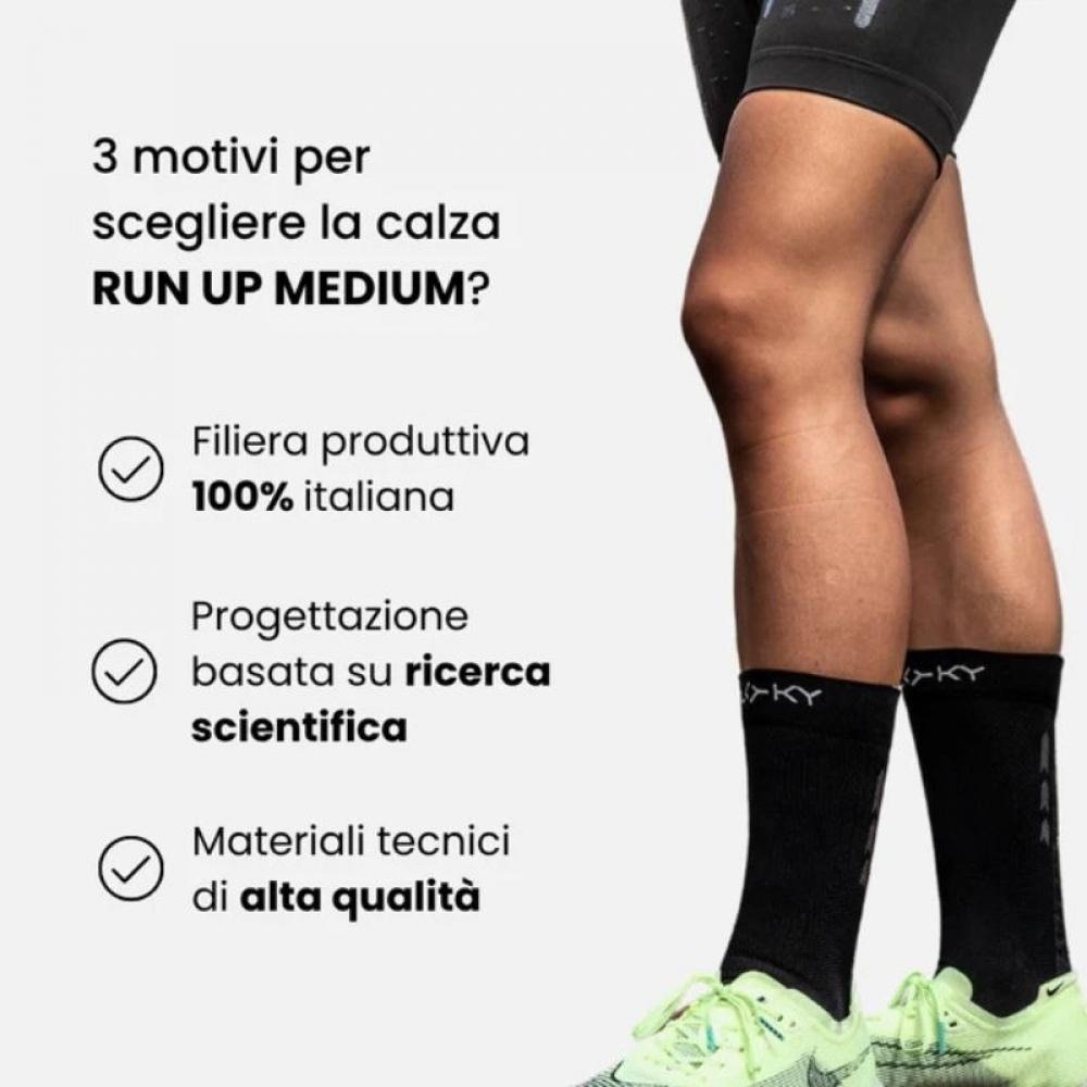 FLOKY RUN UP – Calze tecniche biomeccaniche per running e sport ad alta intensità Supporto, stabilità e comfort in ogni passo. Le Floky Run Up sono calze tecniche biomeccaniche progettate per migliorare la performance nella corsa, ridurre le vibrazioni e garantire protezione e comfort anche sulle lunghe distanze.