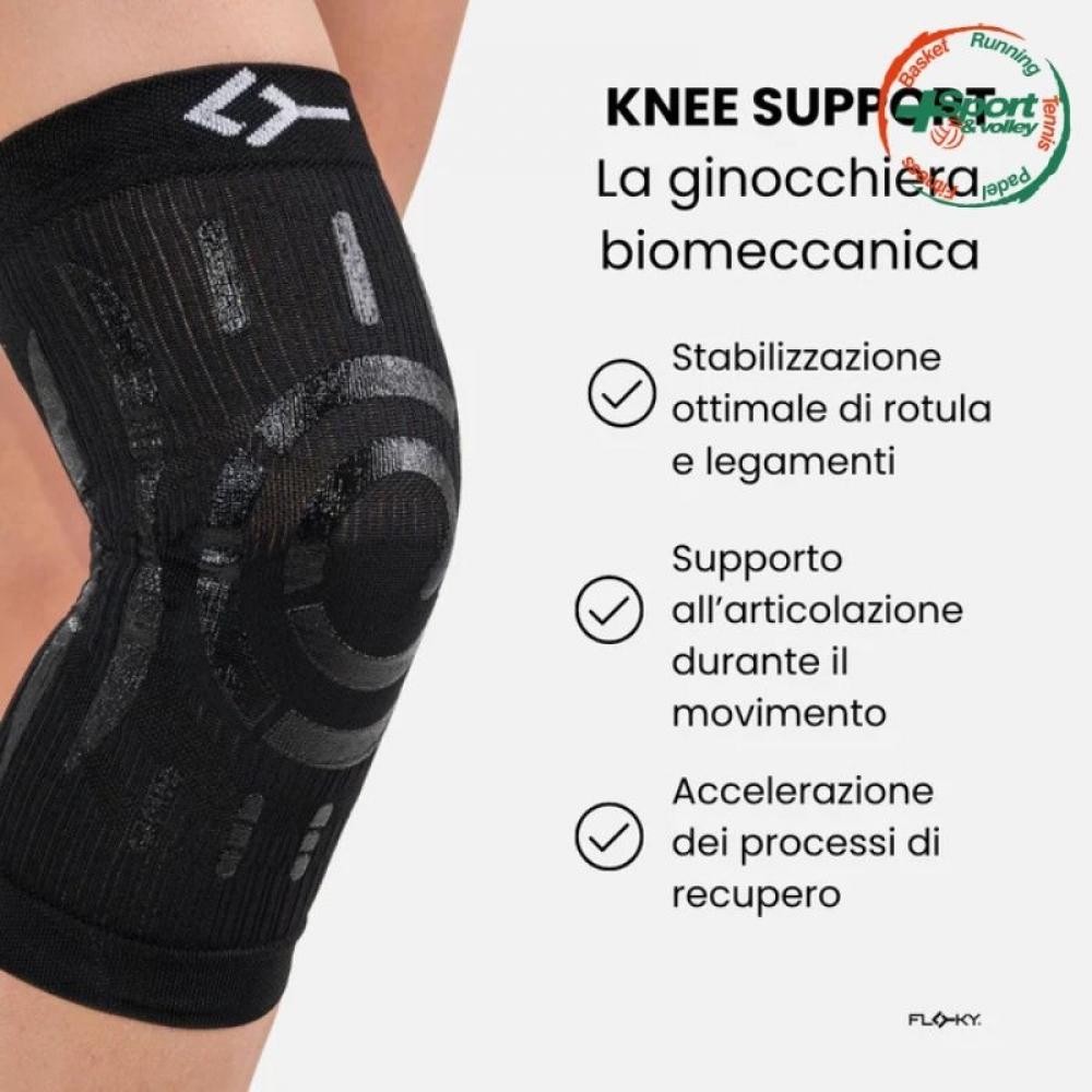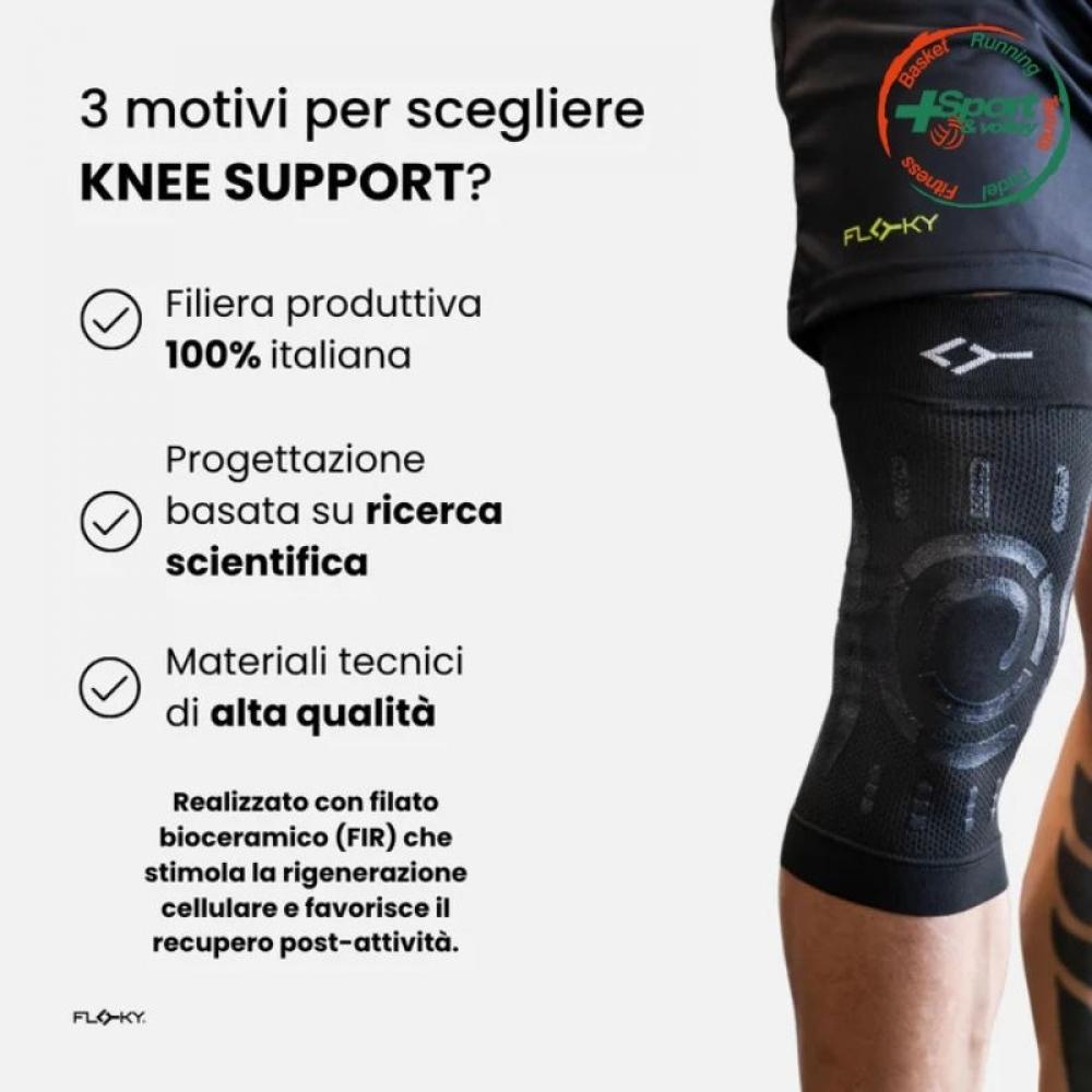 KNEE SUPPORT è consigliata per chi soffre di tendiniti, dolore articolare, distorsioni, lesioni ai legamenti di basso grado e gonfiore, offrendo una protezione completa e favorendo il recupero post-attività. Benefici principali: -Stabilità del ginocchio e della rotula: Le applicazioni biomeccaniche e la compressione del tessuto migliorano la stabilità del ginocchio e della rotula, riducendo il rischio di distorsioni e proteggendo dalle sollecitazioni durante i movimenti rapidi. -Protezione dei legamenti e del tendine rotuleo: Il supporto rinforzato ai legamenti collaterali e al tendine rotuleo aiuta a prevenire traumi, infiammazioni e microtraumi, garantendo una maggiore sicurezza durante l'attività fisica. -Riduzione delle infiammazioni: Il sistema di controllo delle vibrazioni contribuisce a prevenire e ridurre infiammazioni, gonfiori e dolore, particolarmente utili in caso di tendiniti, lesioni ai legamenti di basso grado e distorsioni. -Comfort e recupero accelerato: Il design ergonomico, combinato con bioceramiche integrate nel tessuto, assicura un elevato comfort e stimola la circolazione, accelerando il recupero muscolare e la guarigione.